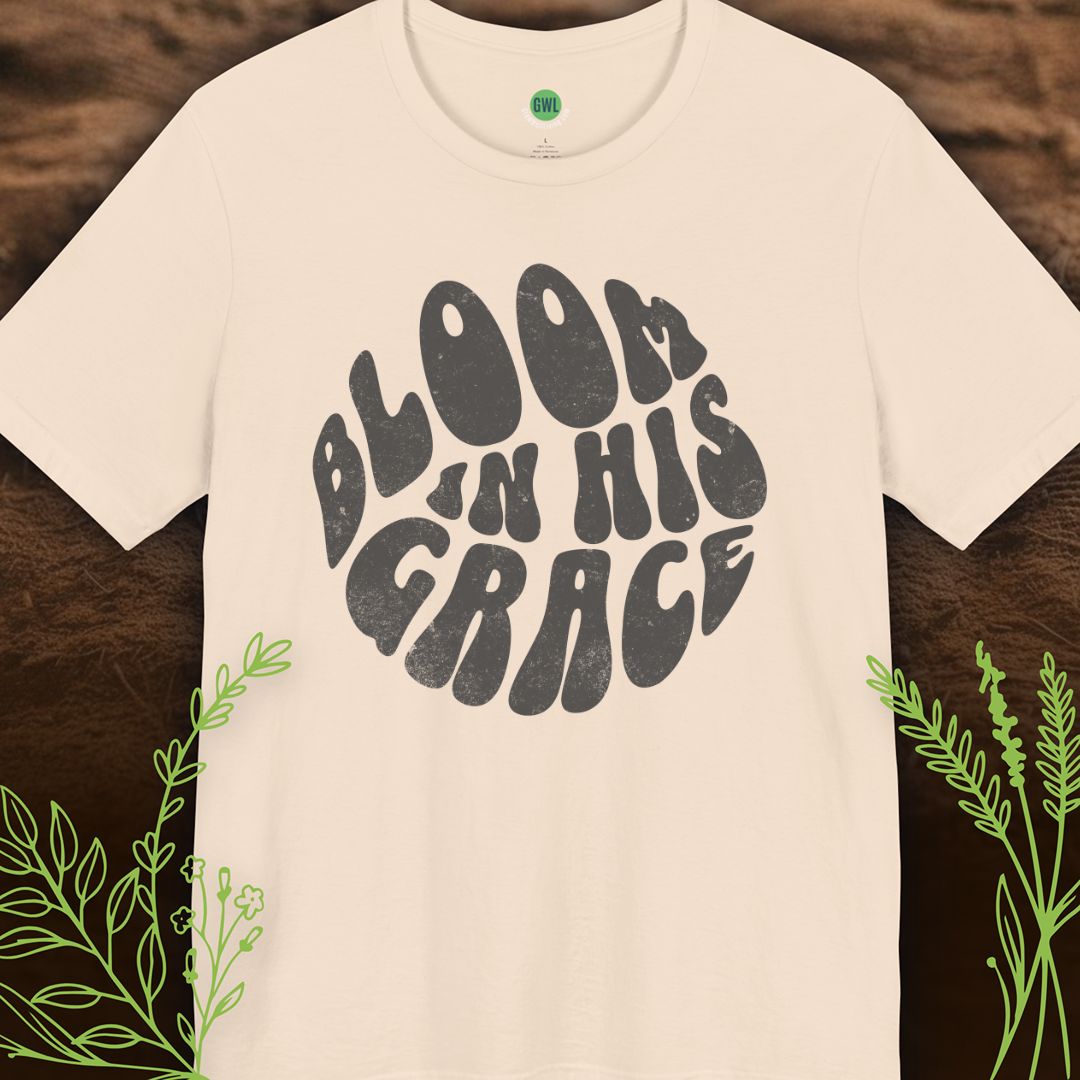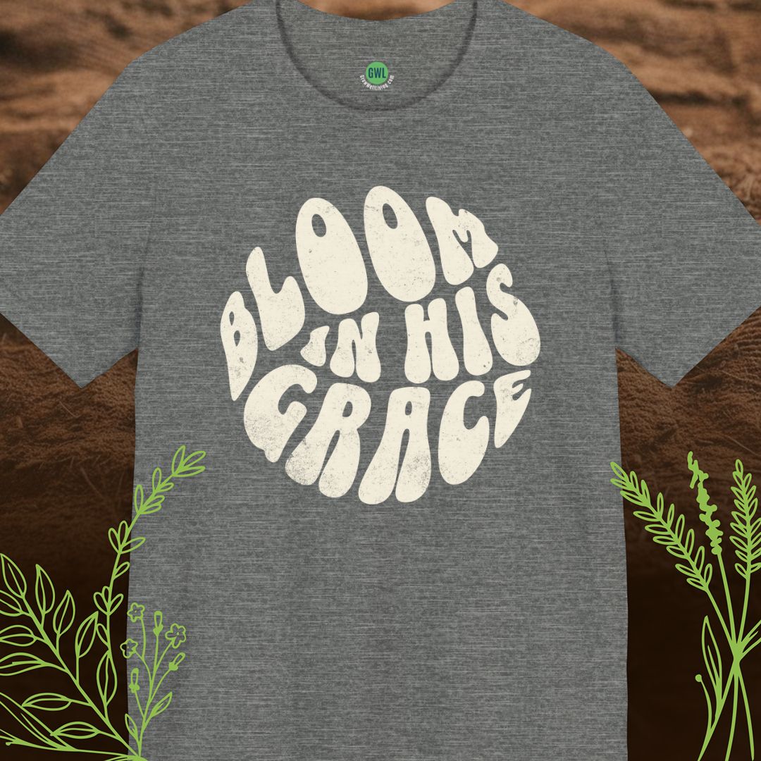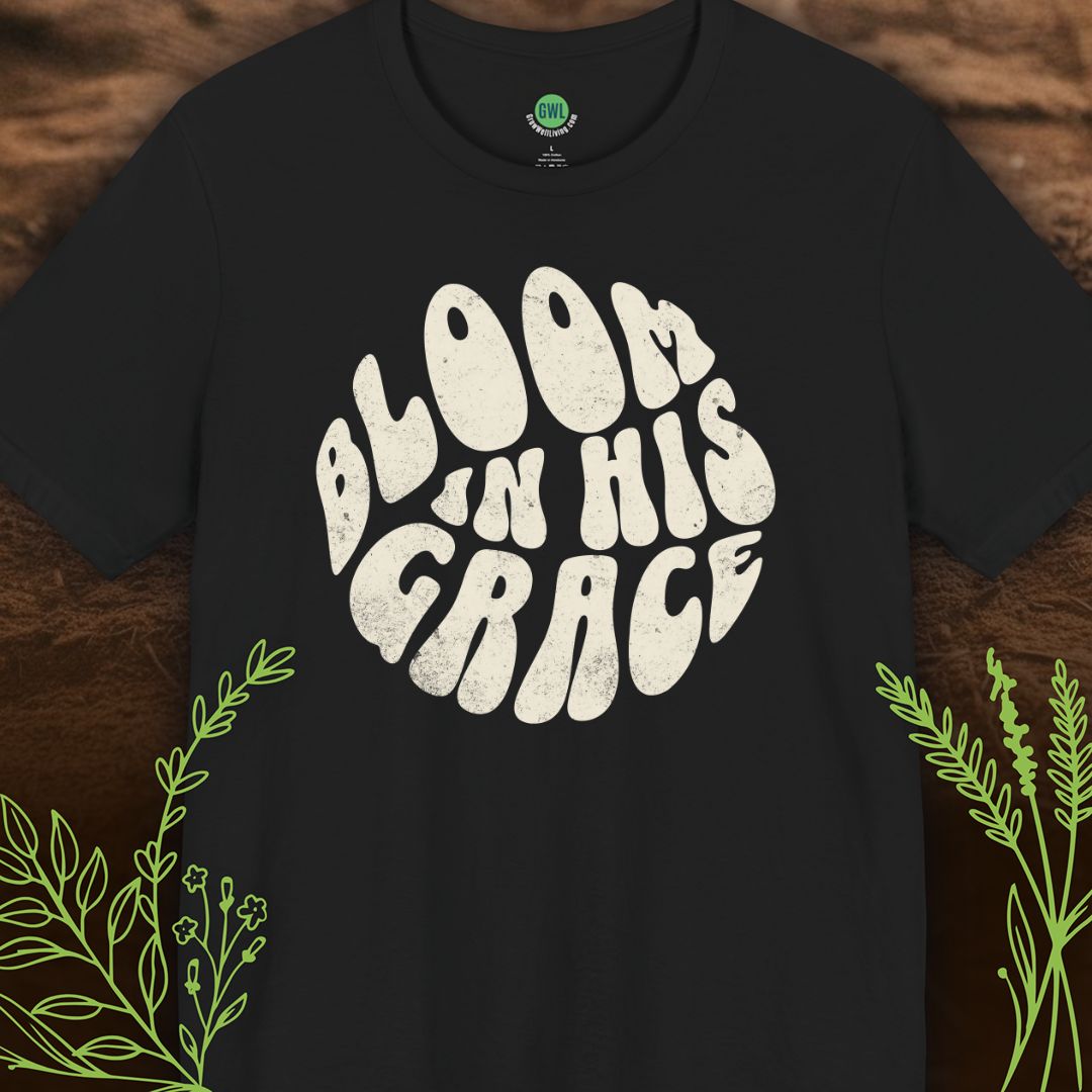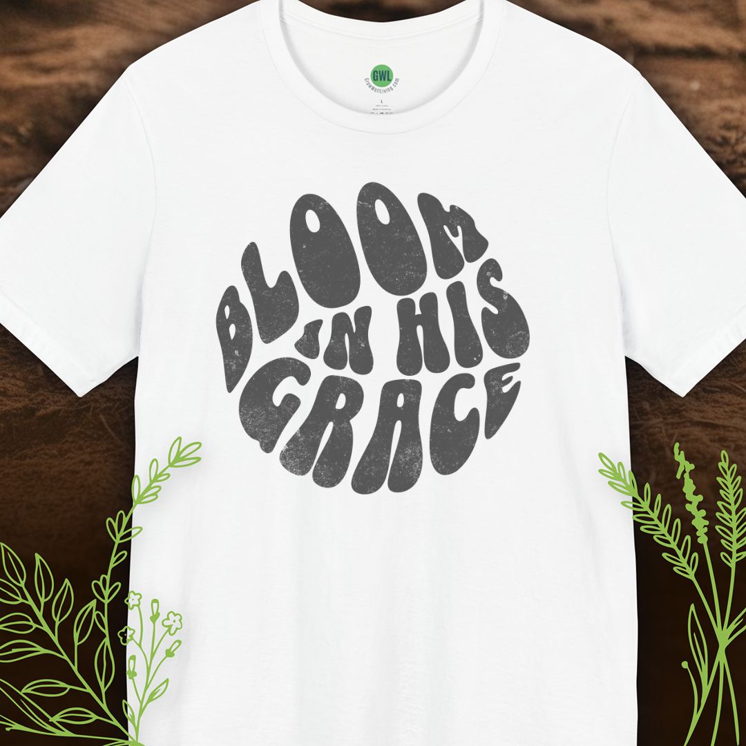 Vintage distressed design with bold retro bubble text, celebrating faith and grace. Perfect for a stylish faith statement.